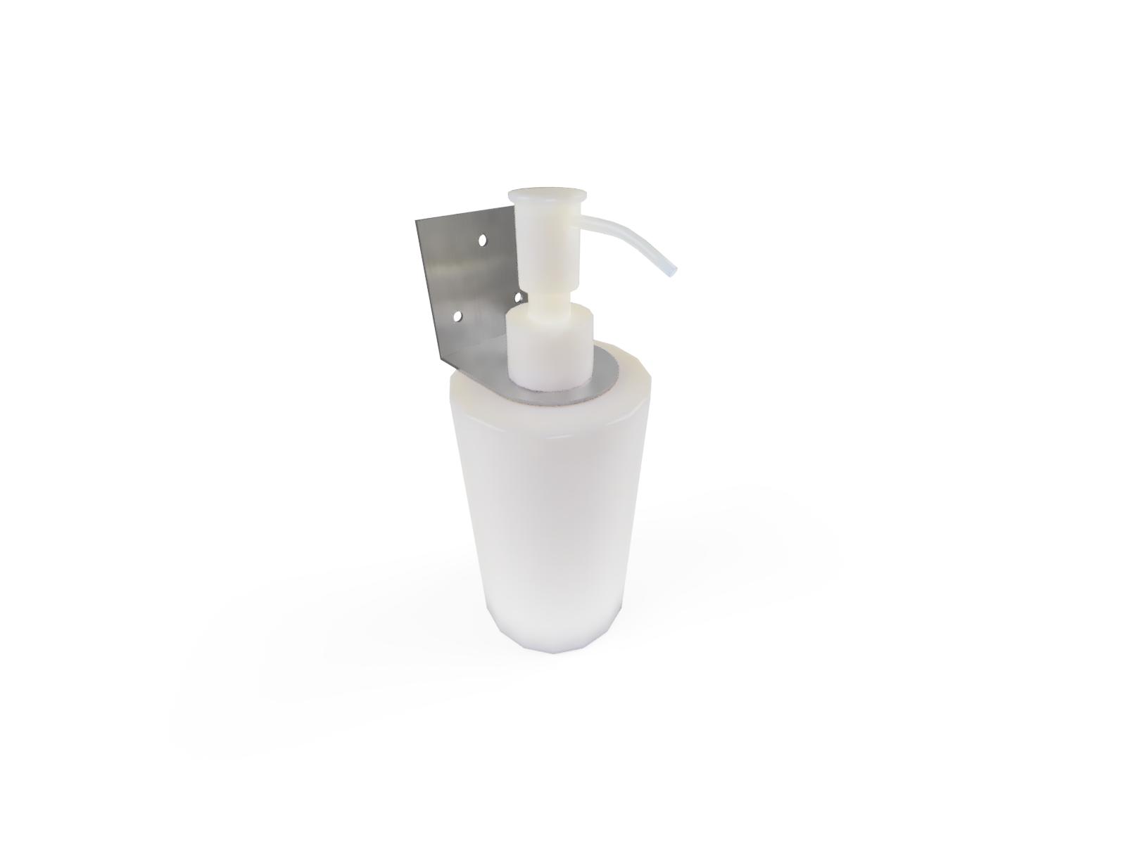 Uchwyt NIERDZEWNY na dozownik do płynu dezynfekującego, mydła lub żelu antybakteryjnego.